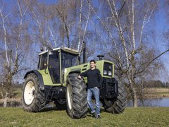 Samuel Bold (30) ist Automatikmonteuer in Fimmelsberg TG: «Meinen Hürlimann H6136 entdeckte ich im Internet. Er war in Holzheim (Deutschland) ausgeschrieben, rund 15 km von Lauingen entfernt, dem Standort der Deutz-Werke. Nach der Besichtigung wurde er am 16. August 2019 importiert. Zum Glück darf ich ihn bei meinem Vater in die Scheune stellen. Er gesellt sich zu meinen anderen Hürlimann Traktoren 5200 (Baujahr 1977) und T6200 Synchromat (Baujahr 1977). Der Hürlimann H6136 bekam im Jahre 2020/2021 eine Restauration durch eine Fachwerkstatt, weil der Vorderachsbock gerissen war.»