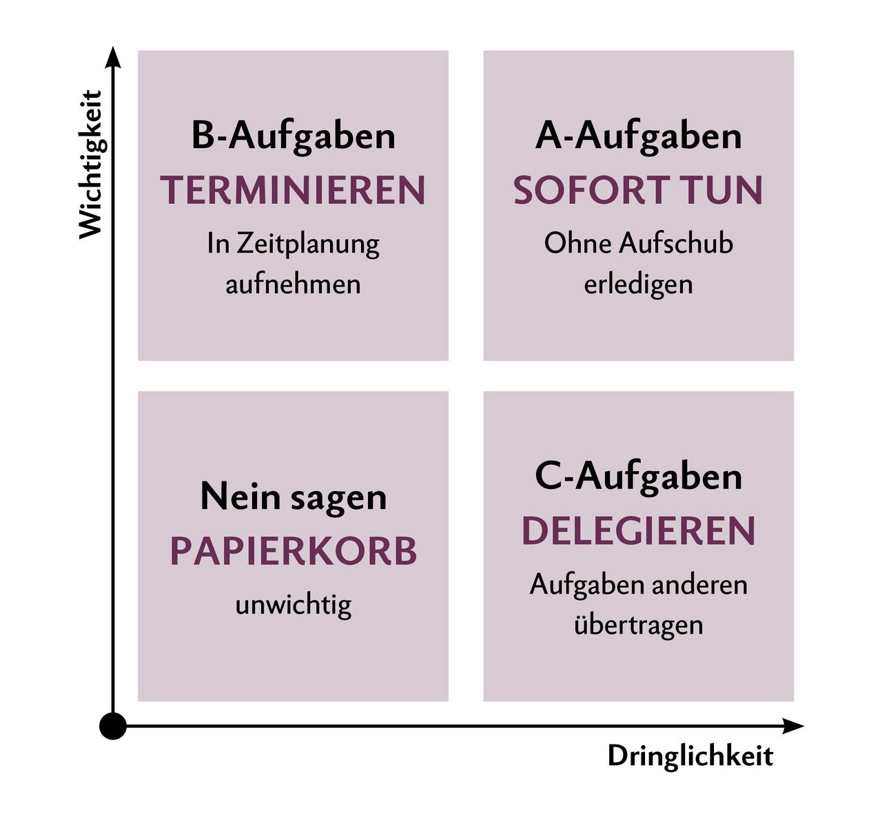 Mit der ABC-Methode werden die Arbeiten nach Wichtigkeit und Dringlichkeit in die drei Kategorien A, B und C eingeteilt: