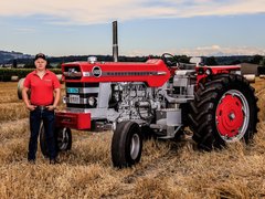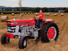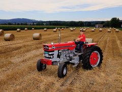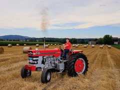 Bei Röthlisbergers ist der Massey Ferguson 1100 für diverse Arbeiten im Einsatz, von der Maissaat bis zur Hochzeitsfahrt und Oldtimertreffen. Der MF 1100 kommt auch zum Ballen pressen und mit der Scheibenegge zum Einsatz.