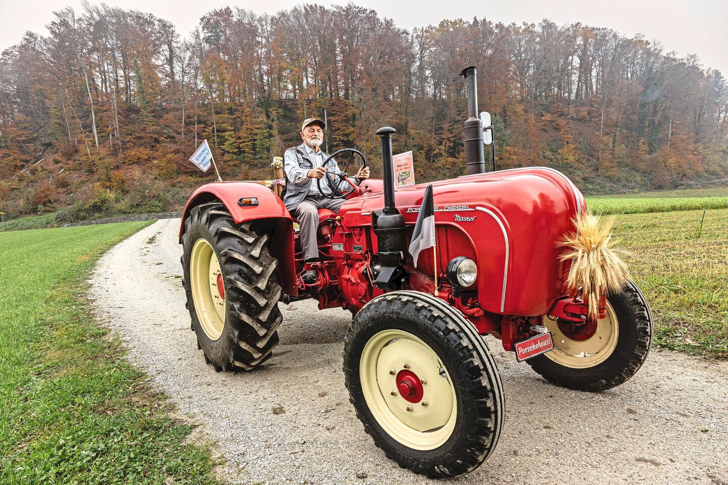 Kurz & bündig - Hans Bachofner ist leidenschaftlicher Porsche-Fan.- Deshalb wurde er als Porschehousi bekannt.- Er macht mehrtägige Oldtimerfahrten über Alpenpässe. [IMG 5] Bei Senioren sind Busreisen beliebt, zum Beispiel eine Rundreise durch die Schweiz. Hans Bachofner ist ebenfalls von Rundreisen begeistert. Allerdings nicht mit dem Bus, sondern mit dem Porsche-Traktor. «Mit meinen Kollegen reisen wir mit 18…