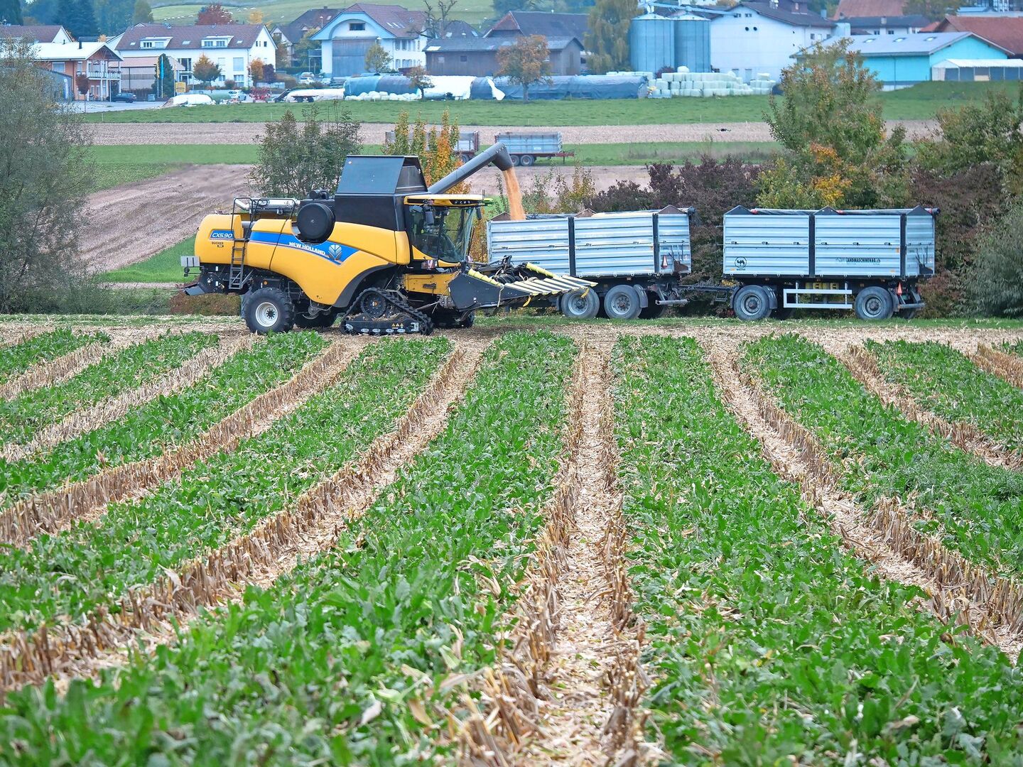 Sobald das nächste Mal gute Wetterbedingungen herrschen, werden auch die Zuckerrüben mit einem zweireihigen Rübenroder geerntet.