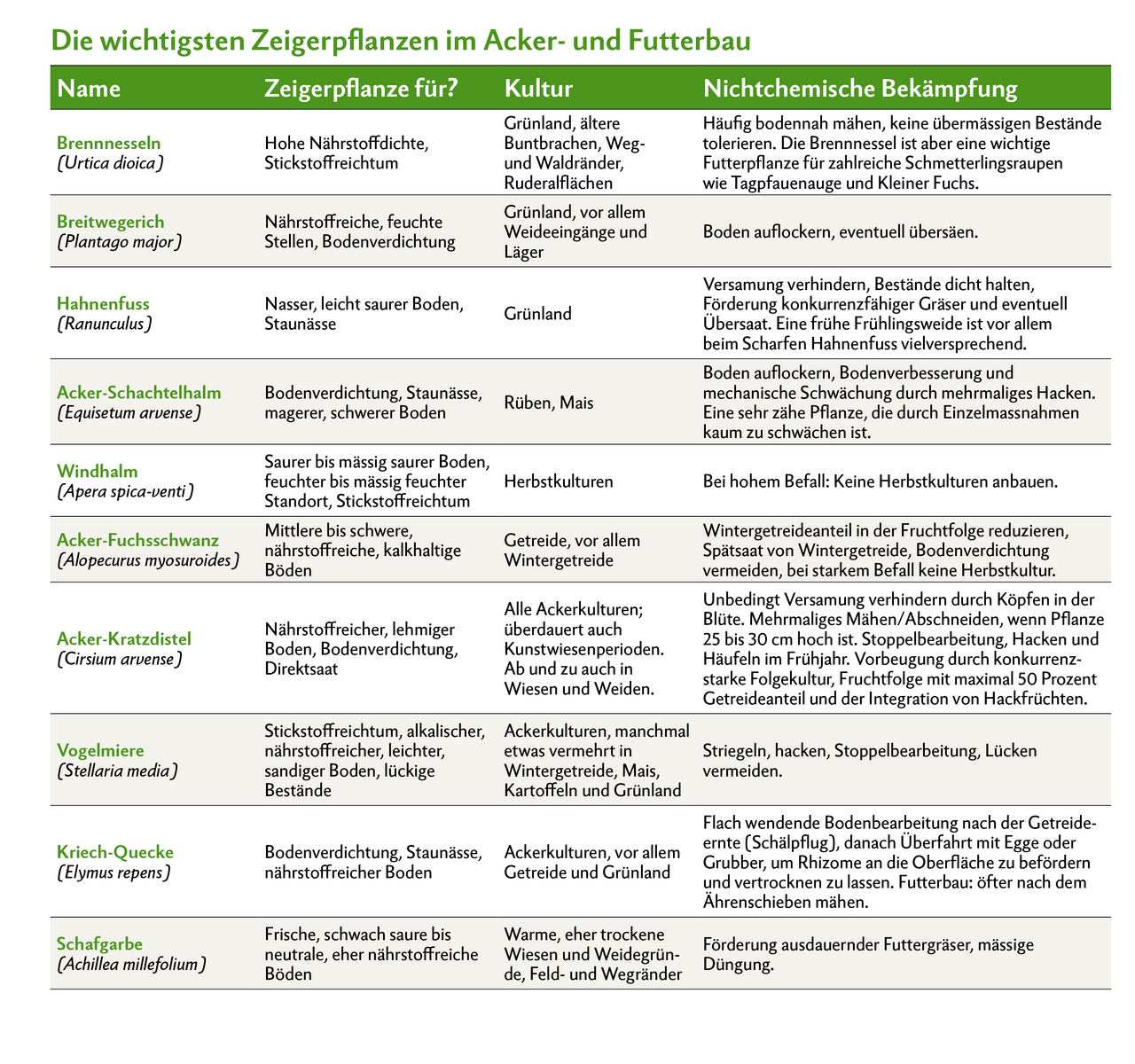 Kurz & bündig-Vor allem das Vorkommen von verschiedenen Pflanzengruppen gibt viele Aufschlüsse über wichtige Bodenparameter. Doch auch einzelne Pflanzen können schon Hinweise geben.-Nicht nur die Gattung einer Pflanze ist auf einen bestimmten Standort angepasst. Ihre Arten und Unterarten können ebenfalls individuelle Standortansprüche haben.-Eine differenzierte Bodenanalyse erübrigt sich durch das Beobachten von…