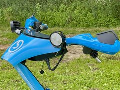 Auf den ersten Blick neu sind das Trittbrett zum «Mitfahren», die Abdeckung bisher offenliegender Bauteile und des Lenkers sowie ein gekühlter Auspufftopf. Mit all diesen Neuerungen ist das Brielmaier-Grundgerät aber immer noch 70 bis 80 Kilogramm leichter als die Grundgeräte der Mitbewerber.