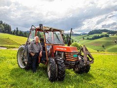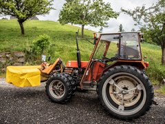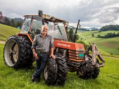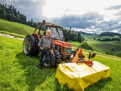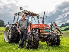 Kari Schmutz (61), Landwirt in Lützelflüh BE, mag seinen Bucher Polytrac 50: «Ich bin schon seit Kindesalter ein Fiat-Fan. Nach der Hofübernahme 1991 haben wir den Polytrac 50 neu angeschafft – und er ist bis heute unser einziger Traktor. Der Polytrac 50 ist ein Fiatagri 45-66 und wurde von Bucher/Guyer in Niederweningen ZH Ende der 1980-er Jahre mit Fronthydraulik, Steuergerät und Frontzapfwelle ausgestattet. Der Polytrac 50 ist wendig und extrem hangtauglich. Mit seiner optimalen Gewichtsverteilung setze ich ihn für alle Arbeiten auf unserem Betrieb ein – und überbetrieblich fürs Mähen.»