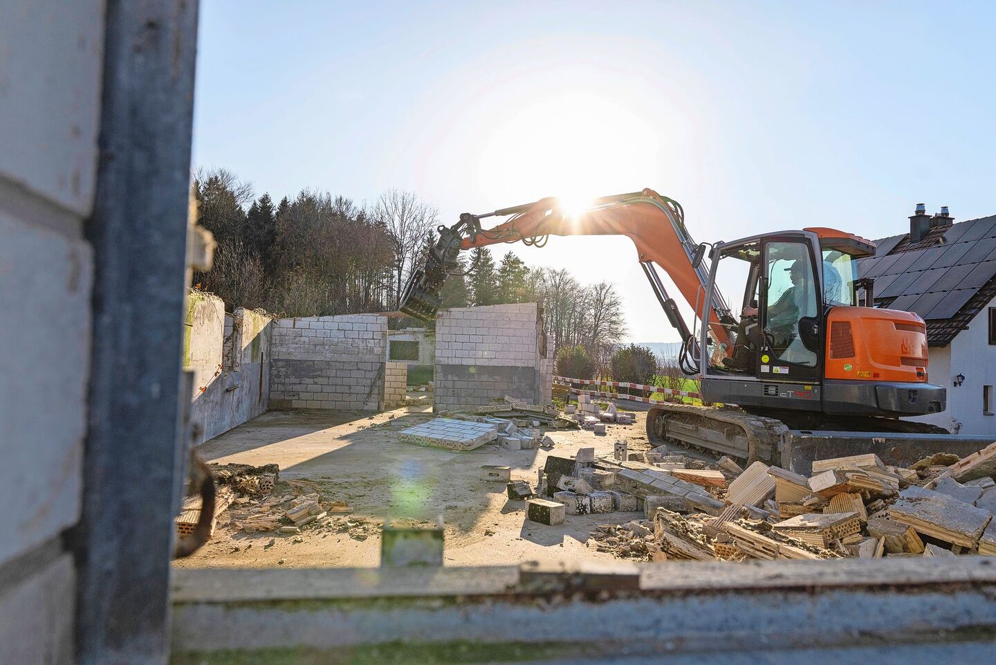 Kurz & bündig- Drei Bauprojekte (Remise, Stall mit Biogasanlage, Wohnhäuser) beschäftigen Familie Duperrex.- Bei allen Projekten gibt es Verzögerungen, bei den Wohnhäusern steht die Bewilligung noch aus.- Da der Betrieb vielseitig und erfolgreich ist, sind die Verzögerungen erträglich. Der Bagger steht auf dem Betonboden, das Gebäude ist weg: Wo einst ein Schweinestall stand, entsteht die Remise für den…