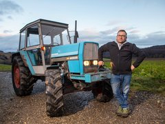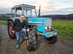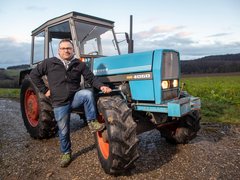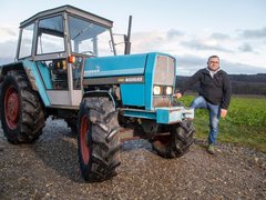 «Der Traktor wurde uns 1978 kurz nach meiner Geburt geliefert. Der Eicher 4060 war der erste Allradtraktor auf unserem Hof. Am liebsten bin ich als kleiner Junge mit ihm und meinem Vater herumgefahren. Ich habe mit 12 Jahren mit ihm das Traktorfahren gelernt. Bis heute mit mehr als 10'000 Stunden habe wir keine nennenswerten Reparaturen gehabt, obwohl er mit teils schweren Ackerbauarbeiten und 12 Jahren Winterdienst (Salzstreuen) nicht gerade geschont wurde. Heute verrichten wir mit ihm immer noch täglich leichte Arbeiten wie Stroh einstreuen, Schwaden und sonstige leichte Arbeiten. Für kein Geld würde ich ihn hergeben, denn dafür ist er mir zu sehr ans Herz gewachsen.»