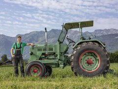 Jan Kropf (21), Landwirt aus Wattenwil BE, ist begeistert von den Bührer-Traktoren: «Ich bin Landwirt und Bührer-Sammler: Ich besitze einen PF 18, einen PP 17 und einen 455. Der PF 18 ist mein TraumTraktor, weil ich ihn mit meinem Vater restauriert habe.