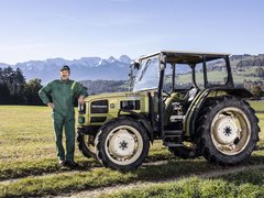 «Mein TraumTraktor ist sehr wendig, das schätze ich. Mit meinem Hürlimann komme ich überall durch. Ich brauche ihn auf unserem gemischten Betrieb für fast alle Arbeiten. Mein TraumTraktor ist auch im Wald im Einsatz. Besonders praktisch ist der tiefe Einstieg in die Kabine.