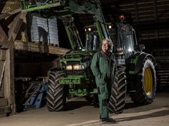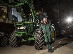 «Auf unserem Betrieb mit Mutterkühen und Ackerbau wird der John Deere 6320 vielseitig auf dem Hof und Feld eingesetzt. Für mich ist er mein TraumTraktor, weil er für das Baujahr 2005 bereits viel Komfort bietet. Von der gefederten Vorderachse (und der damals bereits erhältlichen gefederten Kabine) über die Lastschaltstufen bis zur reduzierten Drehzahl bei Höchstgeschwindigkeit.