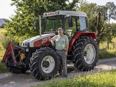 «Ich bin seit meinem zweiten Lehrjahr von den Steyr-Traktoren begeistert. Als ich 1988 meinen Betrieb vom Grossvater übernommen habe, musste ich in die Mechanisierung investieren. Damals habe ich meinen ersten Steyr gekauft: einen 8065 A, der bis heute im Dienst ist.