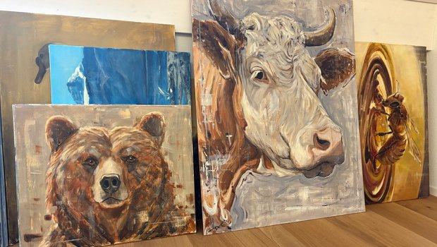 Urs Aebersold fotografiert Kühe auf Spaziergängen mit den Kindern und malt sie abends, wenn die Familie schläft. Zur Kunst kam er über seinen Vater, das Malen hat sich der Landi-Ladenleiter selbst beigebracht. Tiere sind sein Lieblingsmotiv.