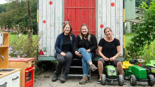 Vivienne Bucher und Angela Bütler bringen einmal pro Woche Kindern die Natur im Rahmen ihrer Bauernhofspielgruppe «Glöckspöuz» in Altwis LU näher. Speziell ist, dass der Betrieb nicht ihrer ist, auf dem sie diese anbieten. Für Bäuerin Stefanie Roth wäre es nicht infrage gekommen, diese selbst durchzuführen.