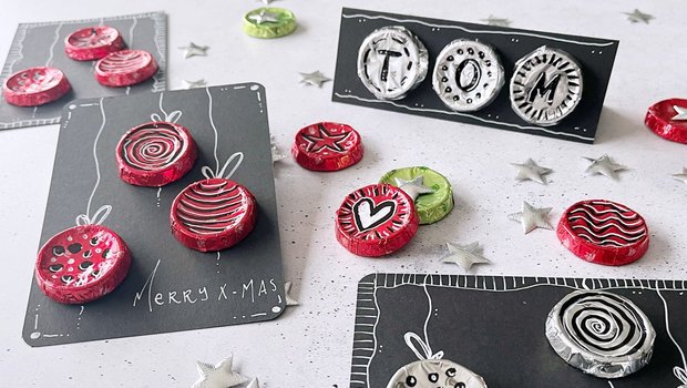 Schoggisüsse Weihnachtskarten, Geschenkanhänger und Tischkarten selber machen