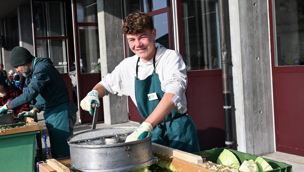 Zum 25. Mal wurde am Wochenende am Bildungszentrum Wallierhof in Riedholz SO fleissig Chabis gehobelt. An der traditionellen Chabishoblete verwandelten 160 Helferinnen und Helfer rund 6,5 Tonnen Weisskohl in Sauerkraut – schnell bildeten sich Schlangen vor der Chabisausgabe. Der beliebte Anlass stösst in Sachen Grösse mittlerweile an seine Kapazitätsgrenzen.