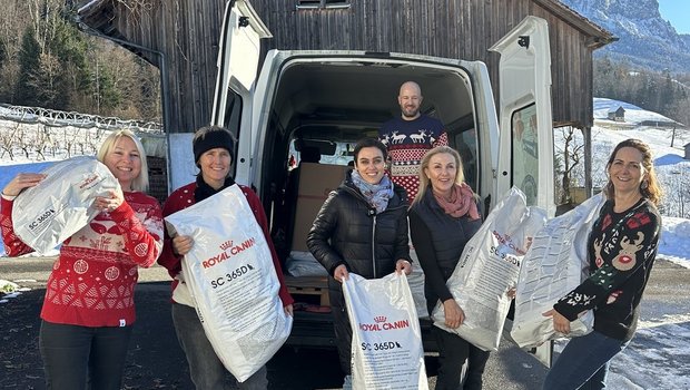 Weihnachtstruck der Susy Utzinger Stiftung: Nina Burri überbringt dem Tierheim Burg (SZ) Futter