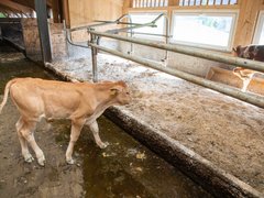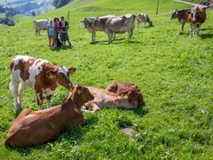 Die Familie Rusch aus Urnäsch AR betreibt Milchwirtschaft und muttergebundene Kälberaufzucht. Die Kälber gehen tagsüber mit den Milchkühen auf die Weide und trinken bei den Muttertieren. Für die Betriebsleiter überwiegen die Vorteile dieses Systems.