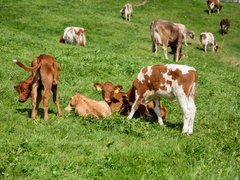 Kälber und Milchkühe auf der gleichen Weide