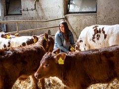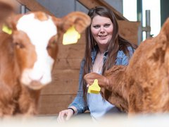 Die Meisterlandwirtin Sonja Geiser arbeitet zu 80 Prozent als Besamungstechnikerin bei Swissgenetics. Zudem hilft die 28-Jährige auf dem elterlichen Hof in Roggliswil im Kanton Luzern mit. Den Milchviehbetrieb wird sie in einigen Jahren übernehmen.