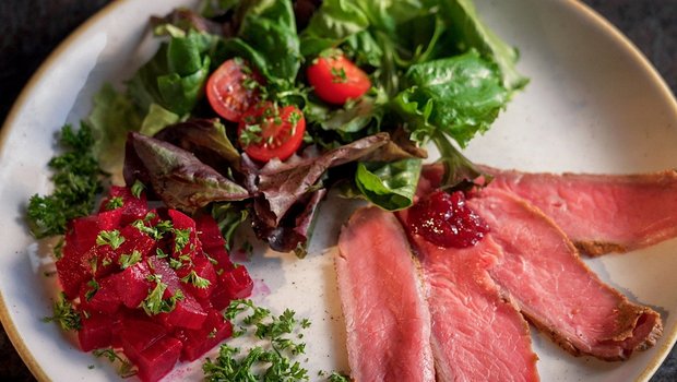 Corina Kohler serviert in der siebten Folge der «SRF bi de Lüt – Landfrauenküche 2025» als Vorspeise Roastbeef vom Angus-Rind, Herbstsalat mit Dressing-Eigenkreation und Randensalat. Hier gibt es das Rezept für 4 Personen.
